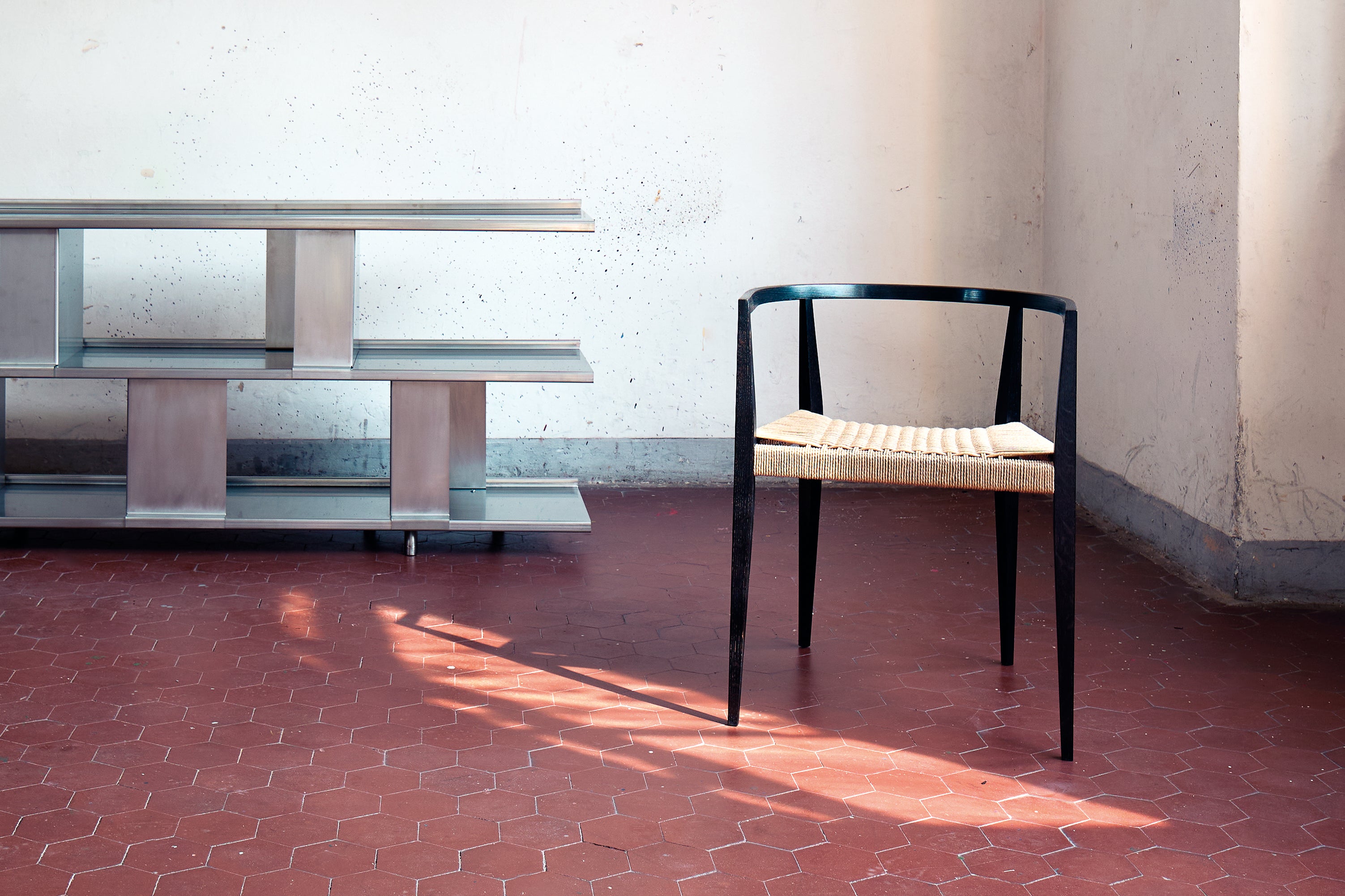 lehn chair ebonised oak, papercord black